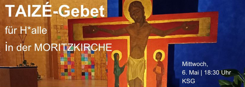 Zum Taizé-Gebet lädt die Katholische Studierendengemeinde am Mittwoch, 6. Mai in die Moritzkirche ein. Der Gottesdienst beginnt 18:30 Uhr und wird von den Studierenden musikalisch begleitet.
